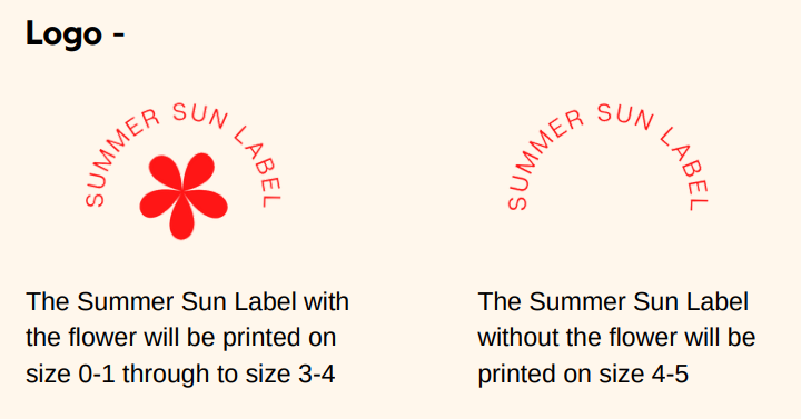 NOTE: Summer Sun Label on arm & flower up to size 3-4. Summer Sun Label & No flower on 4-5